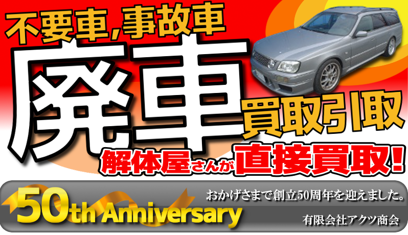 10万キロ以上走行、10年落ち、事故車、車検切れ、廃車でも問題ありません!まずは店舗へお問い合わせください!