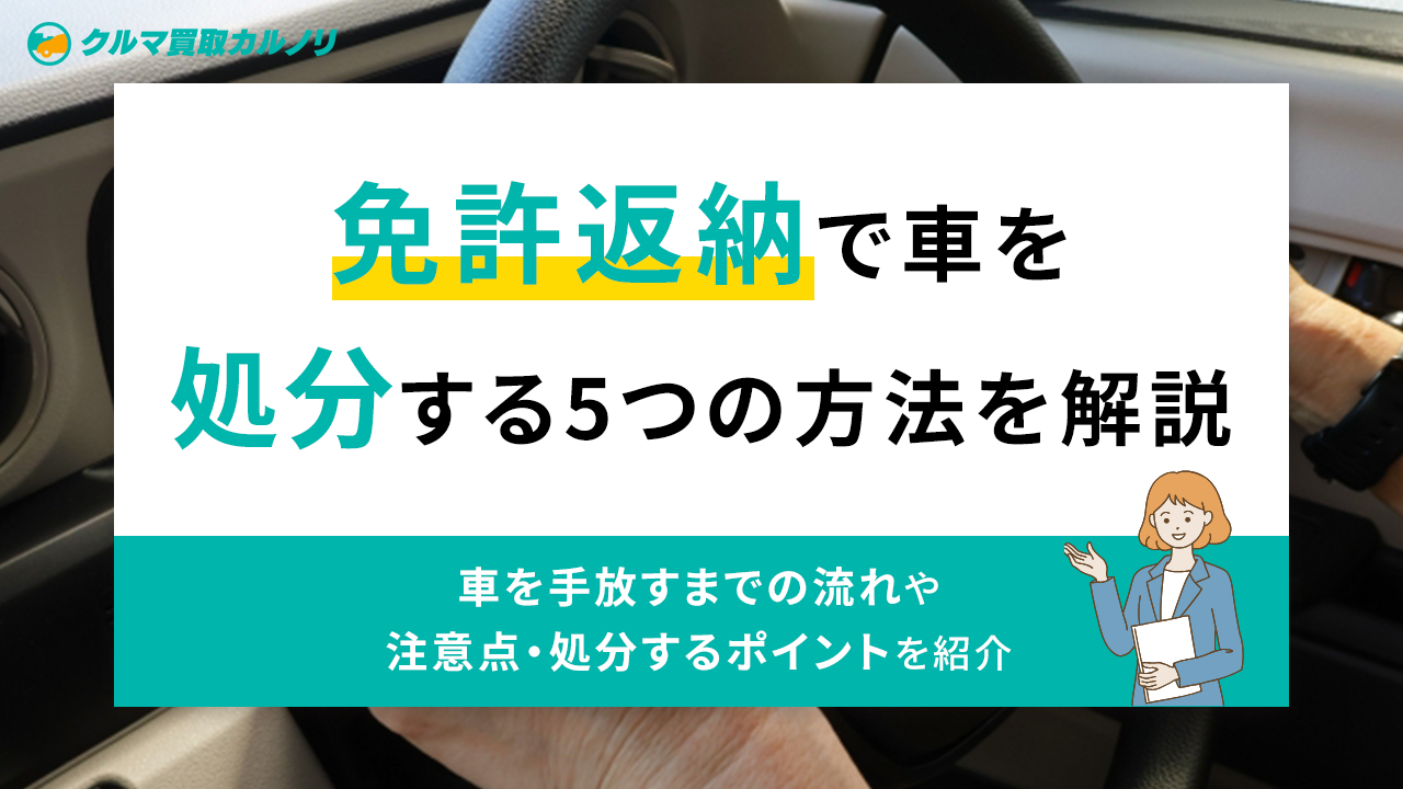 そこでこの記事では、免許返納時の車の処分の方法を解説します。また、処分の流れや注意点、お得に手放すポイントも併せて紹介します。
