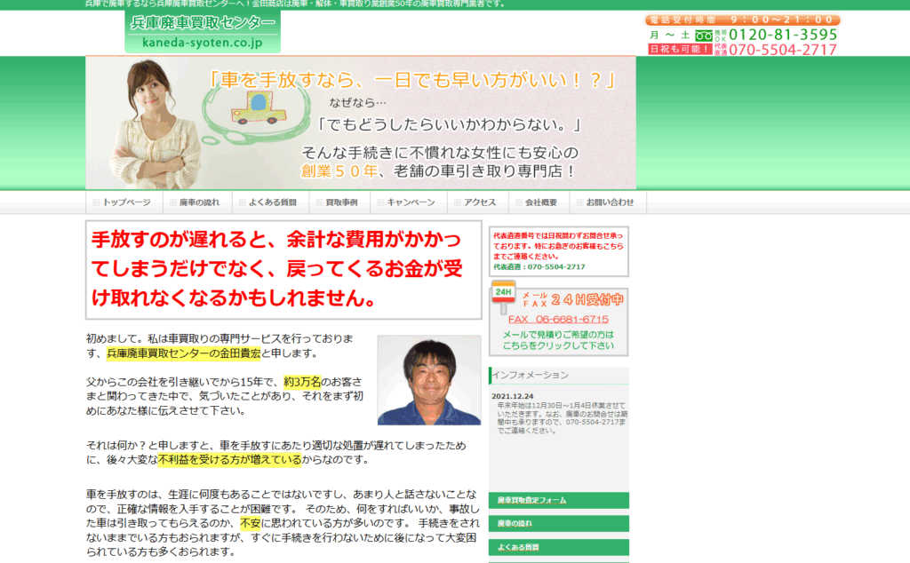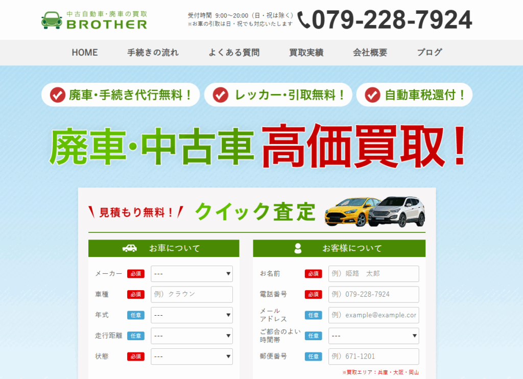 なお、兵庫廃車買取センターでは、廃車に伴う引き取りや買取額の支払い、手続きは最短2日で完了します。予約していれば、休日や夜間も引き取りに対応しているので、忙しい人でも利用しやすい環境です。