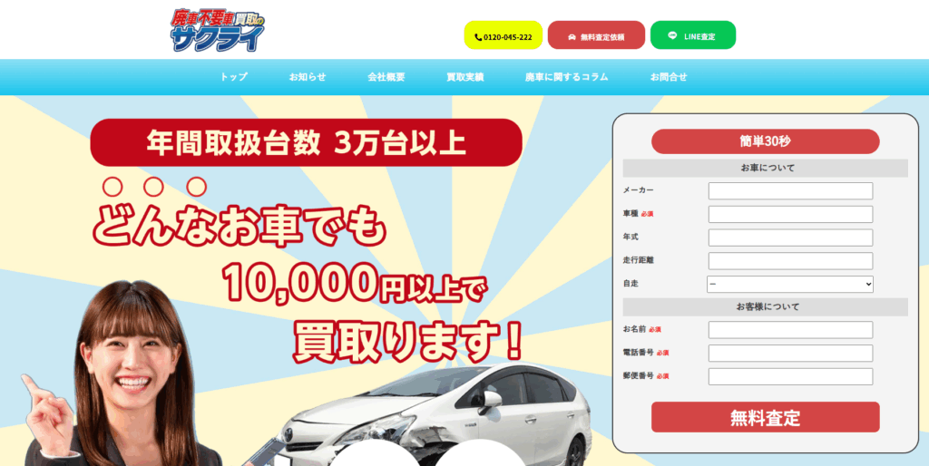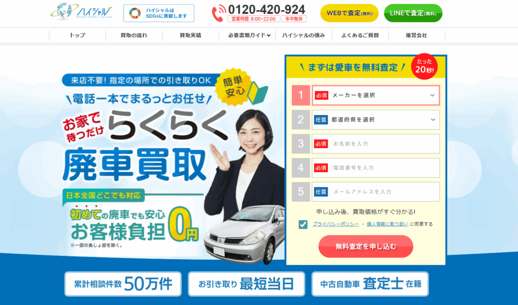 10万キロ・10年落ちの車でも買い取っている実績も多く、安心して車を任せられます。また、納得してから契約となるため、強引な営業は一切ありません。