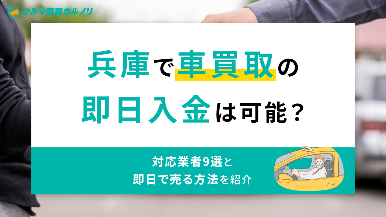 そこでこの記事では、兵庫で車買取の即日入金は可能なのかを解説します。また、対応業者9選や即日で売るためのコツもあわせて紹介します。