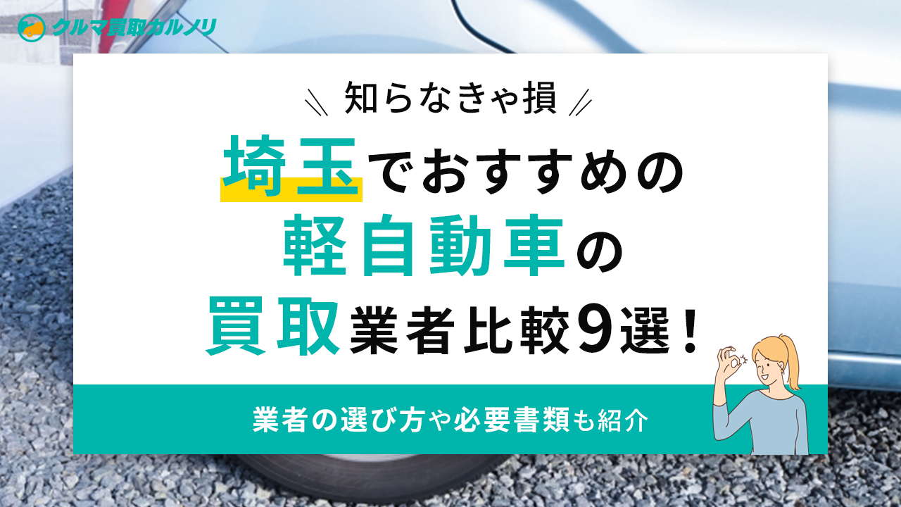この記事では、『埼玉でおすすめの軽自動車の買取業者』を紹介します。あわせて、買取業者を選ぶ方法や軽自動車を高く売る方法、売却する際に必要な書類なども解説します。