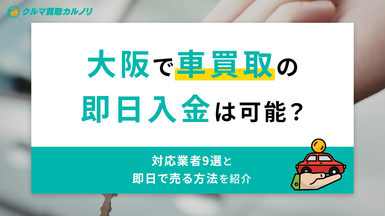 そこでこの記事では、大阪府で車を売却した際に即日入金できる買取業者を9社紹介します。また、頼りになる買取業者の選び方や即日で売る方法などを解説します。