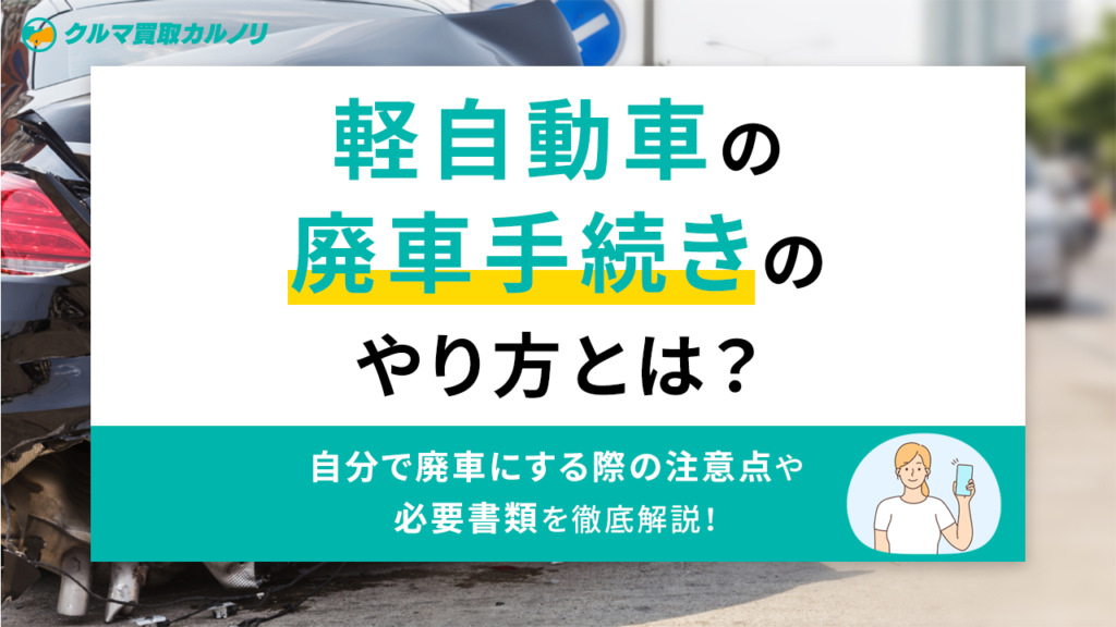 軽自動車を手放す方法の1つに廃車手続きがあります。事故や故障、乗り換えなどの理由で廃車を検討する際、 「自分で手続きできるの?」「何を準備すればいい?」 と疑問に思う方は多いのではないでしょうか。 そこでこの記事では、軽自動車の廃車手続きの... -