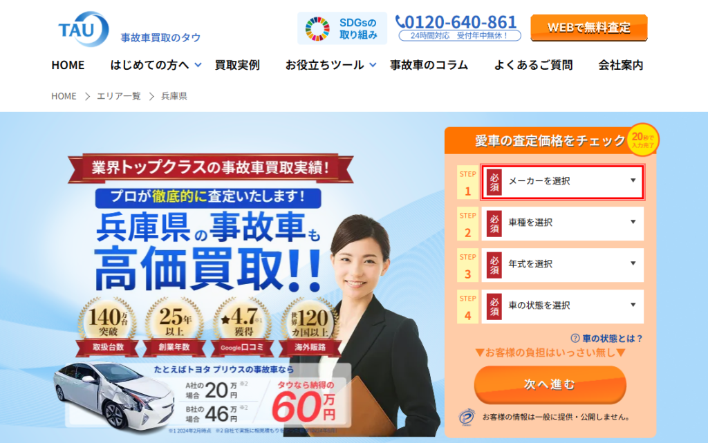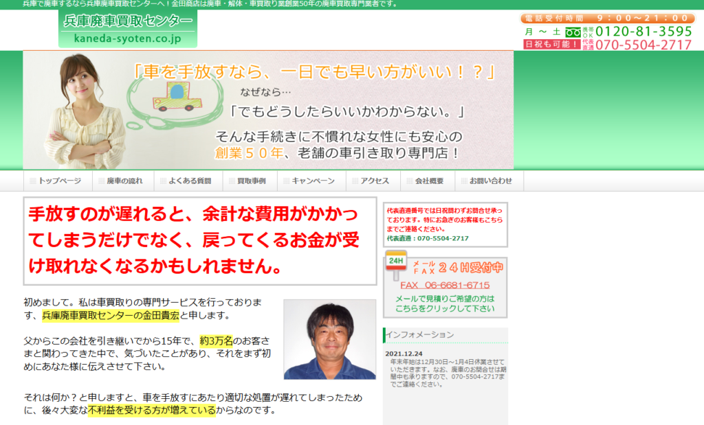 兵庫県エリアでは伊丹店が営業しており、スピーディーな即日査定や指定場所への出張査定も依頼が可能です。年式が10年以上前の古い車や走行距離が10万kmを超える多走行車、さらには事故歴のある車や車検が切れた状態でも、1台ずつ誠実に査定し買い取ってくれます。