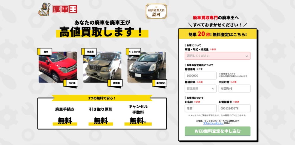 - 車両の搬送費や廃車にかかる事務手続きも無料