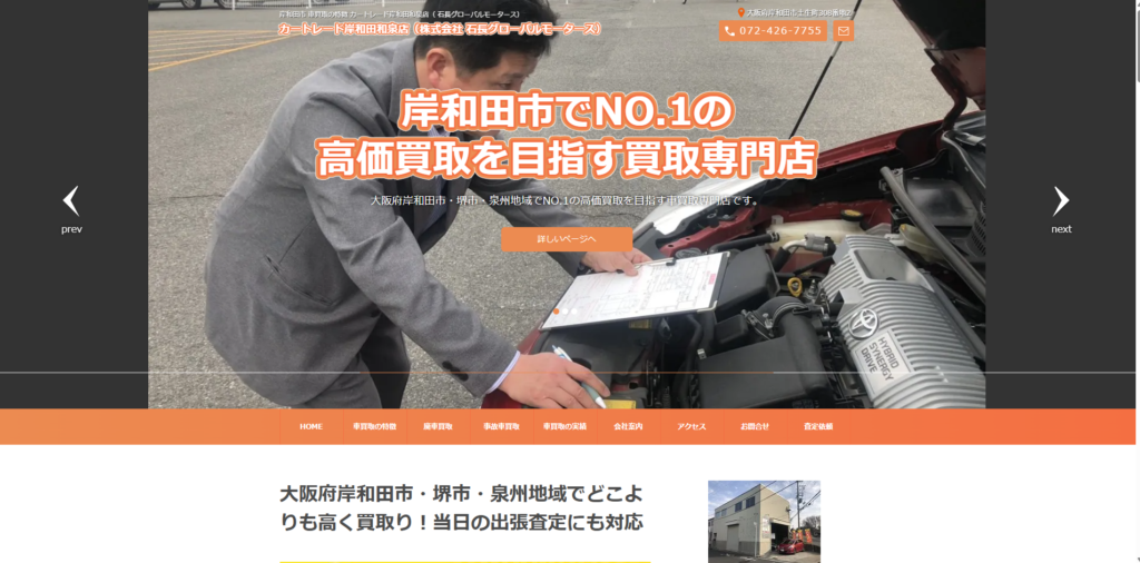 過走行車や低年式車でも買取対応しているのが大きな強みです。大阪本店では、和泉市や高石市、河内長野市も買取対応エリアに含まれています。店舗が近くにない場合でも、無料の出張査定が利用できます。