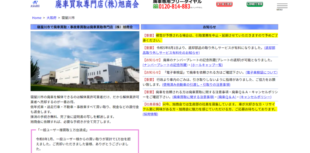 寝屋川市でおすすめの廃車・事故車・不動車・故障車買取業者比較9選!