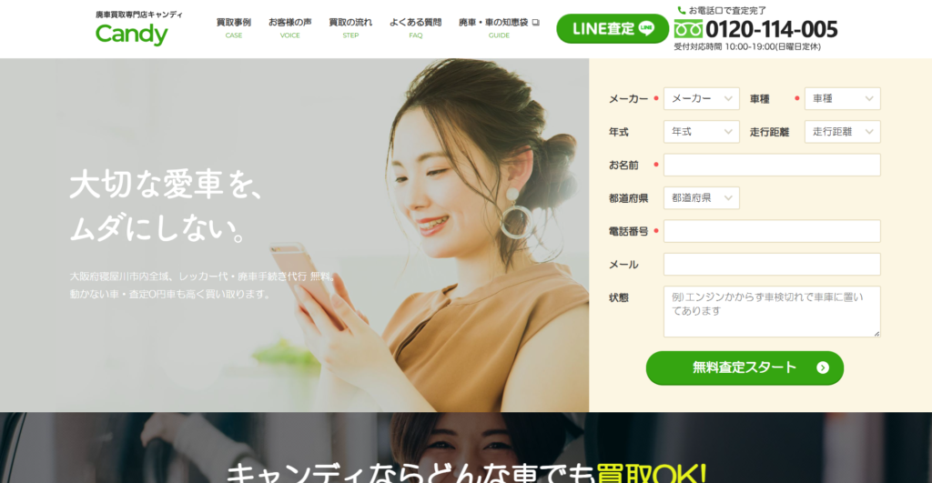 寝屋川市で動かなくなった車や古い車の処分を検討している際、有力な選択肢となるのがキャンディです。独自の販路を持つことで、どんな状態の車でも「0円以上」での買取を提示しています。