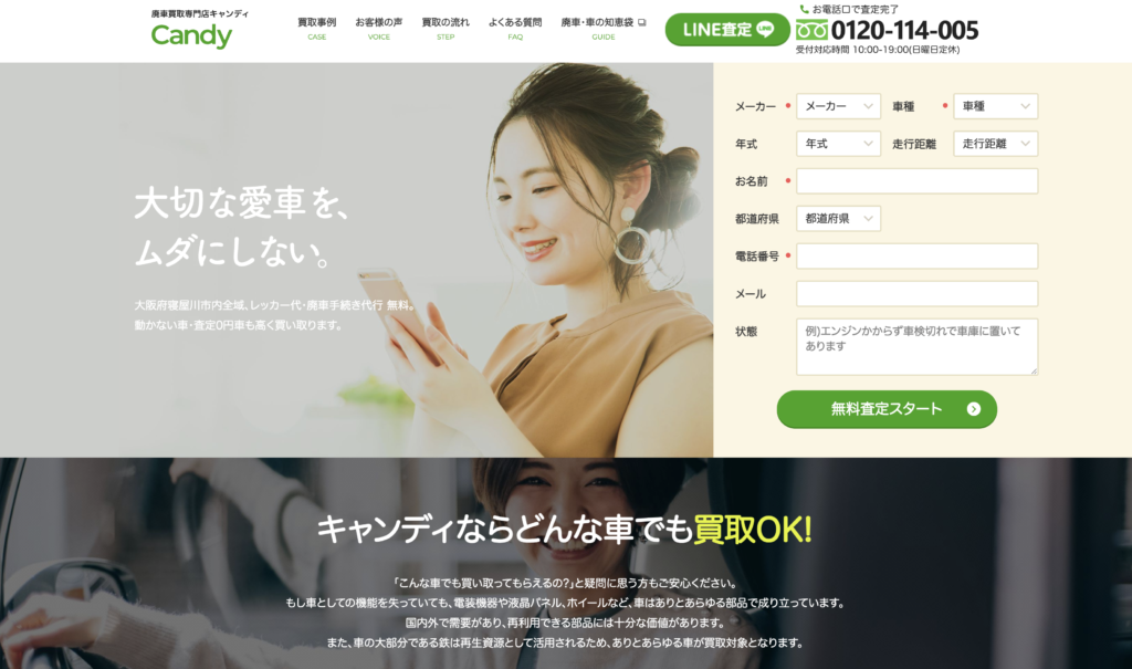寝屋川市で動かなくなった車や古い車の処分を検討している際、有力な選択肢となるのがキャンディです。独自の販路を持つことで、どんな状態の車でも「0円以上」での買取を提示しています。