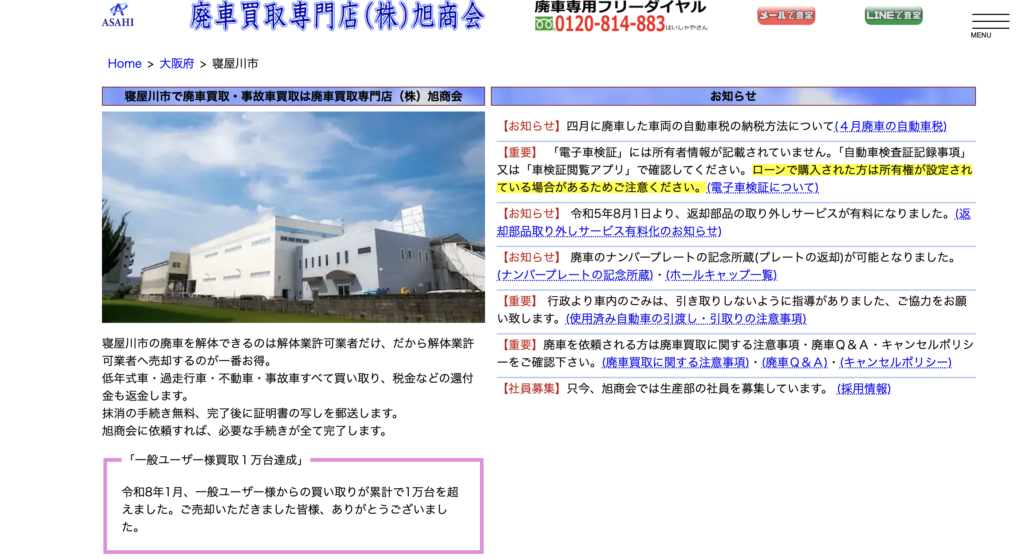 寝屋川市でおすすめの廃車・事故車・不動車・故障車買取業者比較9選!