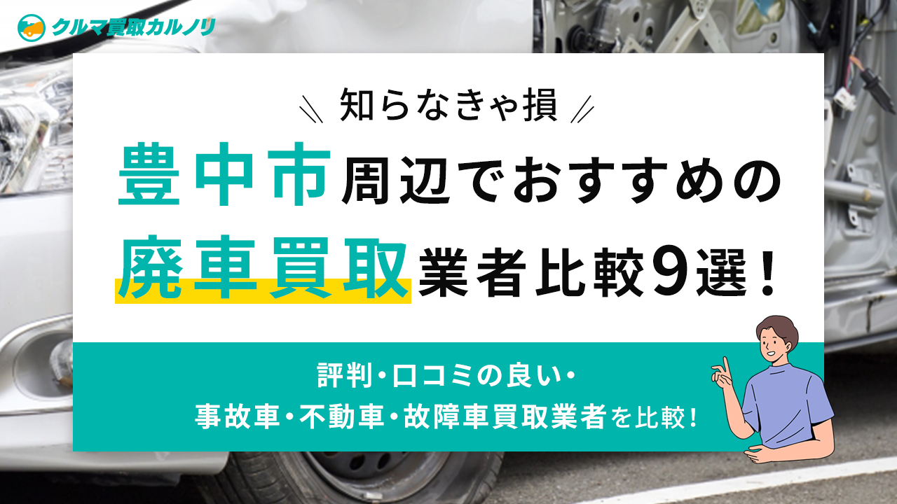この記事を読めば、廃車・事故車・不動車・故障車の買取で失敗しない方法や、豊中市周辺でのおすすめ廃車買取業者を理解できるので、「廃車をお得に売却したい」と考えている方は、ぜひ参考にしてみてください。