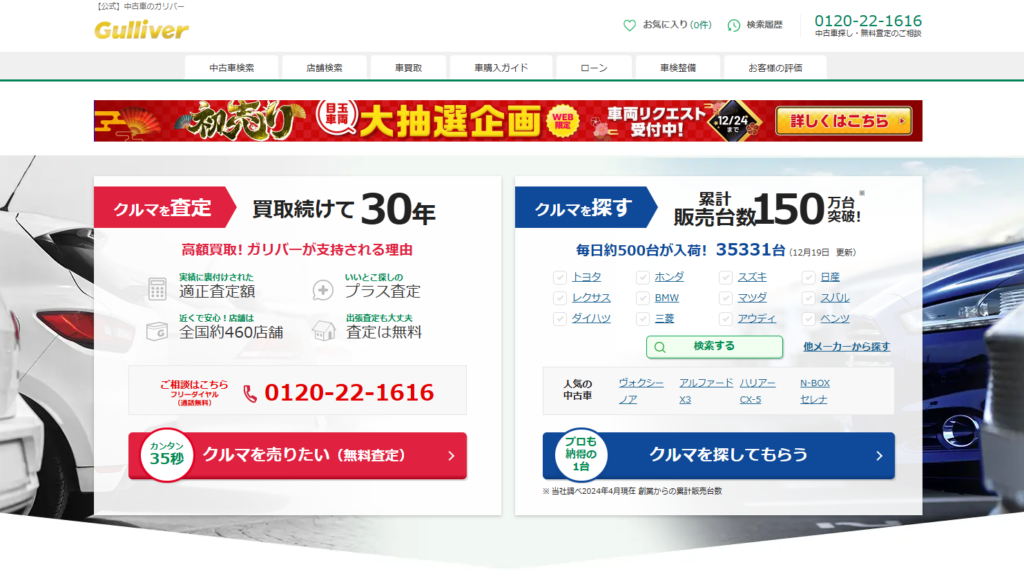 クルマ買取カルノリは、全国に中古車を高価買取する専門業者です。全国展開の「カルノリレンタカー」が運営していて、買取後はレンタカーとして再利用できるからこそコスト削減ができ、高く買取できます。また、実際にユーザーから寄せられる口コミが日本で1番良く、多くの方に満足いただいております。