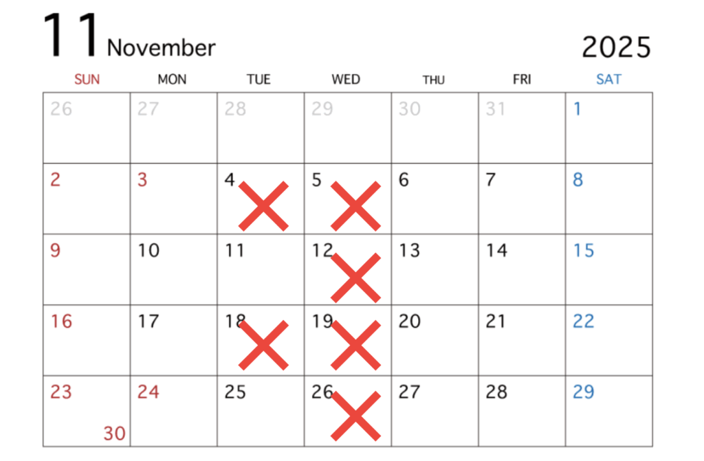 11月 営業日カレンダー